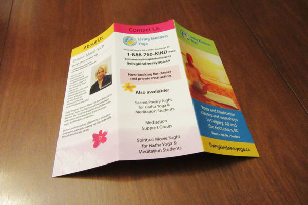 Just Completed: Trifold Brochure for Living Kindness Yoga This colorful trifold brochure design for Denise-Marie of Living Kindness yoga is unified with the website design for the company, and will... read more →