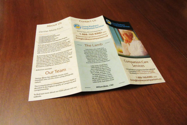 Just Completed: Trifold Brochure for Living Kindness Companion Services This updated trifold brochure design for Living Kindness Companion Services reflects the new look for the company as it grows and... read more →